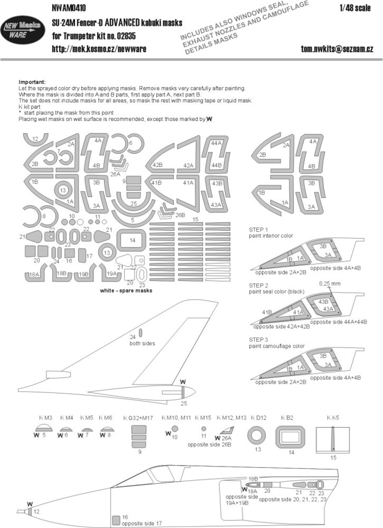 New Ware - 1/48 Sukhoi Su-24M Fencer D ADVANCED kabuki masks aircraft canopy including window seals, all other clear parts, a lot camouflage details, exhaust nozzles. (for Trumpeter kits)