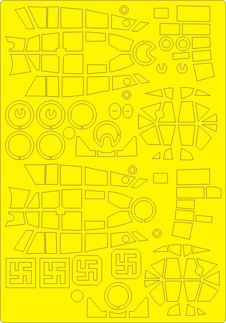 all windows including inner side masks, other clear parts, wheels, 2 x hakenkreuz. (for ICM kits)