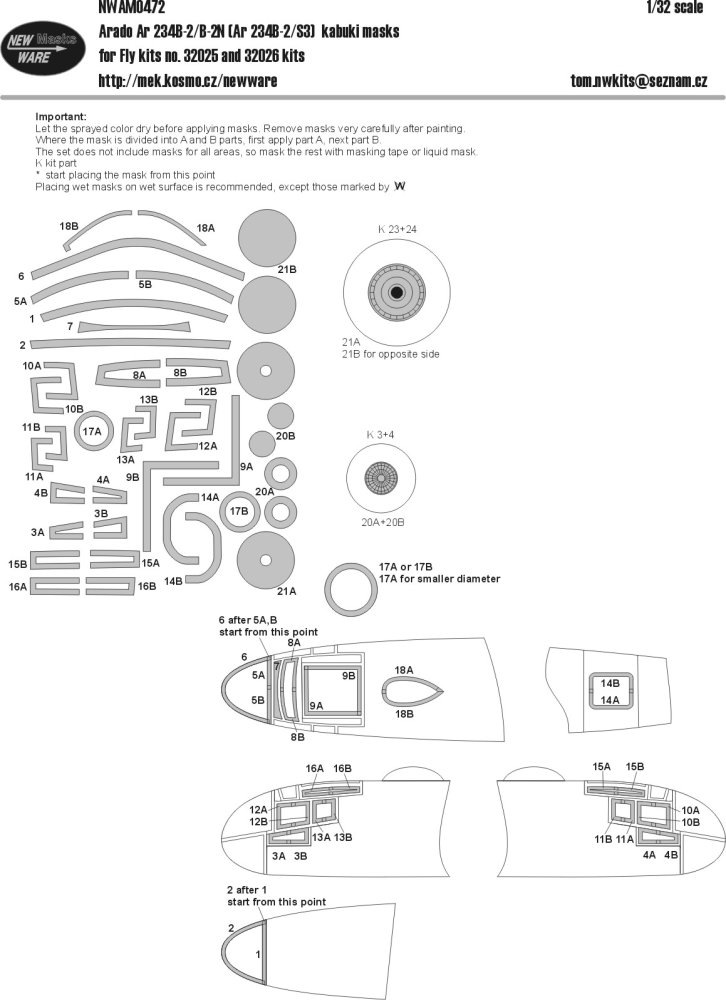 New Ware - 1/32 Arado Ar-234B-2/B-2N/ Ar-234B-2/S3 kabuki masks (designed to be use with Fly kits)