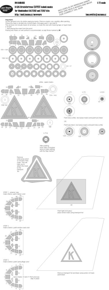 New Ware - 1/72 Boeing B-52G Stratofortress EXPERT all windows including window seals and inner side masks, wheels, air intakes, correct K sign on the rudder (for Modelcollect kits)