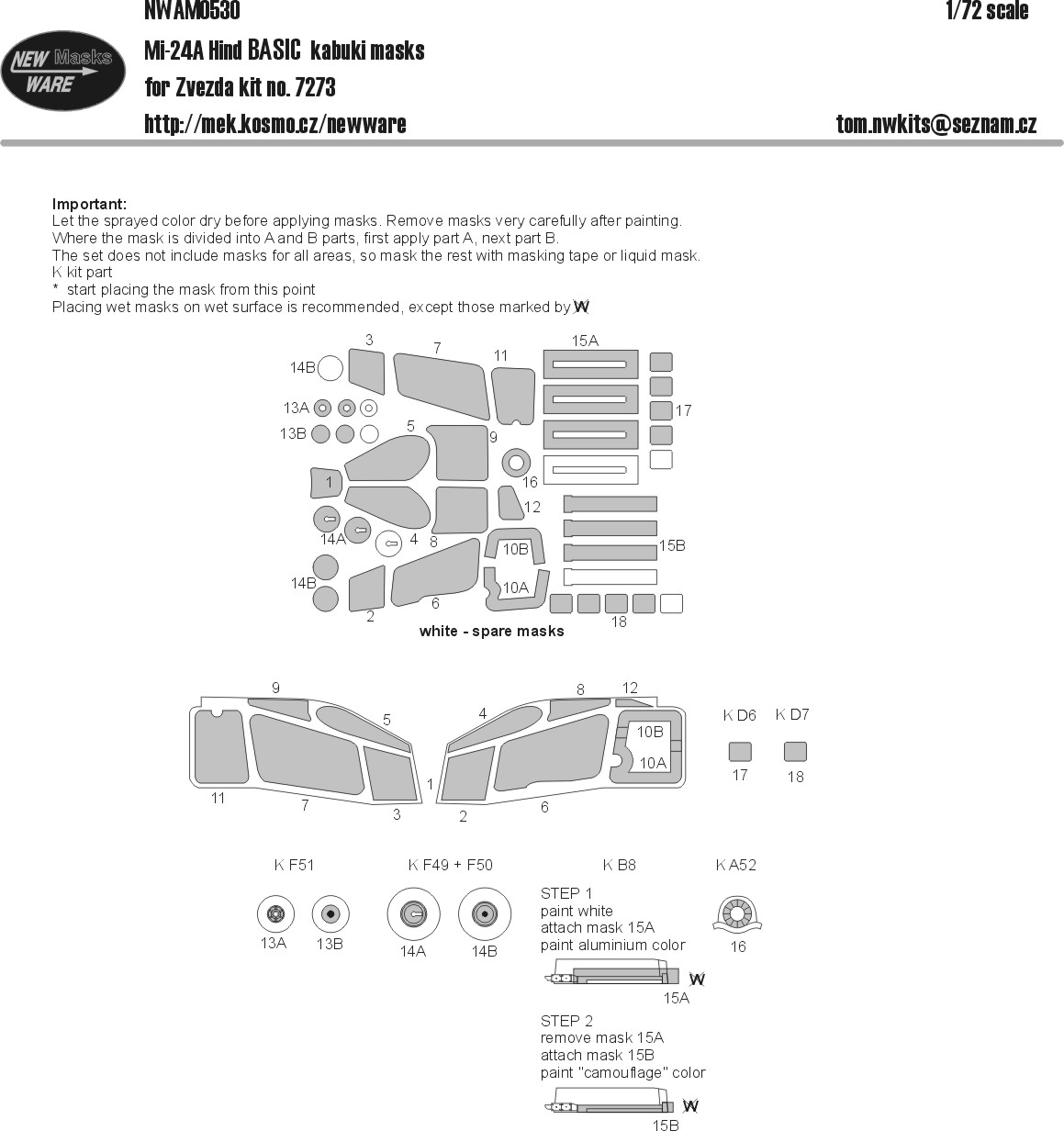 New Ware - 1/72 Mil Mi-24A Hind BASIC kabuki masks all windows, wheels, rotor blades, air intakes (for Zvezda kits)