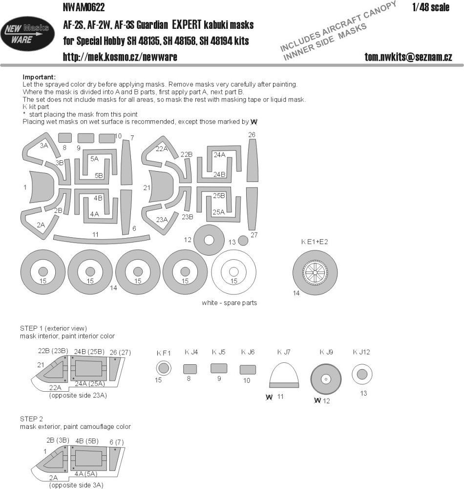 New Ware - 1/48 Grumman AF-2S/2W/3S Guardian Expert paint mask (for Special Hobby kits)