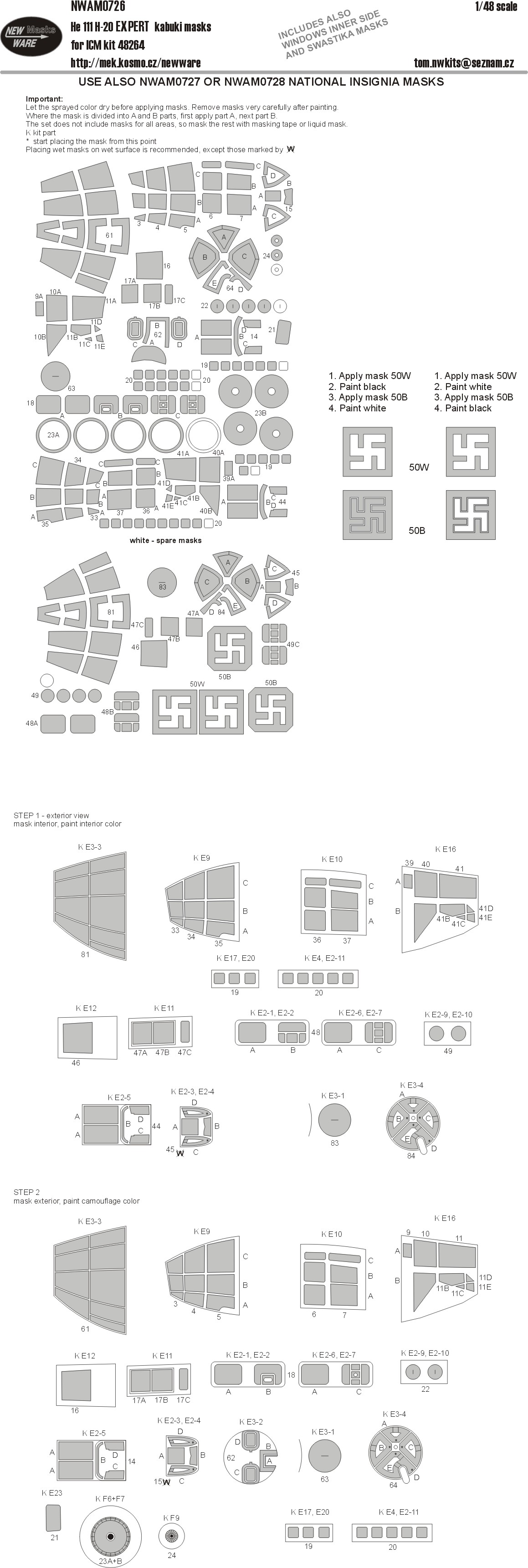 New Ware - 1/48 Heinkel He-111H-20 Expert kabuki masks all windows including inner side masks, other clear parts, wheels, swastikas (for Icm kits)