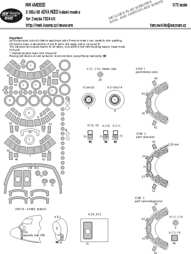 New Ware - 1/72 Lockheed C-130J-30 Hercules Advanced kabuki masks all windows including seal, wheels, camouflage details (for Zvezda kits)