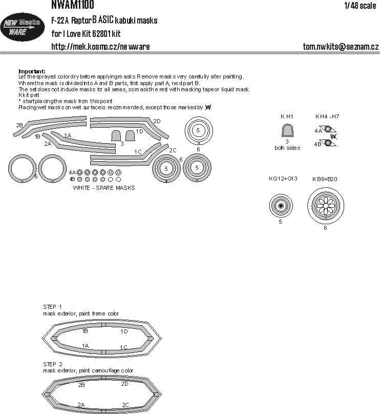 New Ware - 1/48 Lockheed-Martin F-22A Raptor Basic kabuki masks aircraft canopy, other clear parts, wheels (for I Love kits)