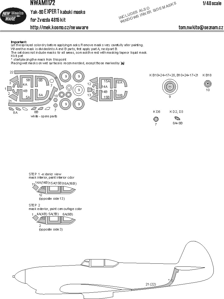 New Ware - 1/48 Yakovlev Yak-9D Expert kabuki masks aircraft canopy including inner side masks, other clear parts, wheels, camouflage (for Zvezda kits)