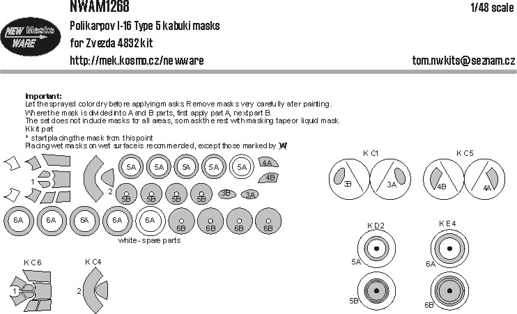 NEW WARE - 1/48 Mask Polikarpov I-16 Type 5 for Zvezda 4832