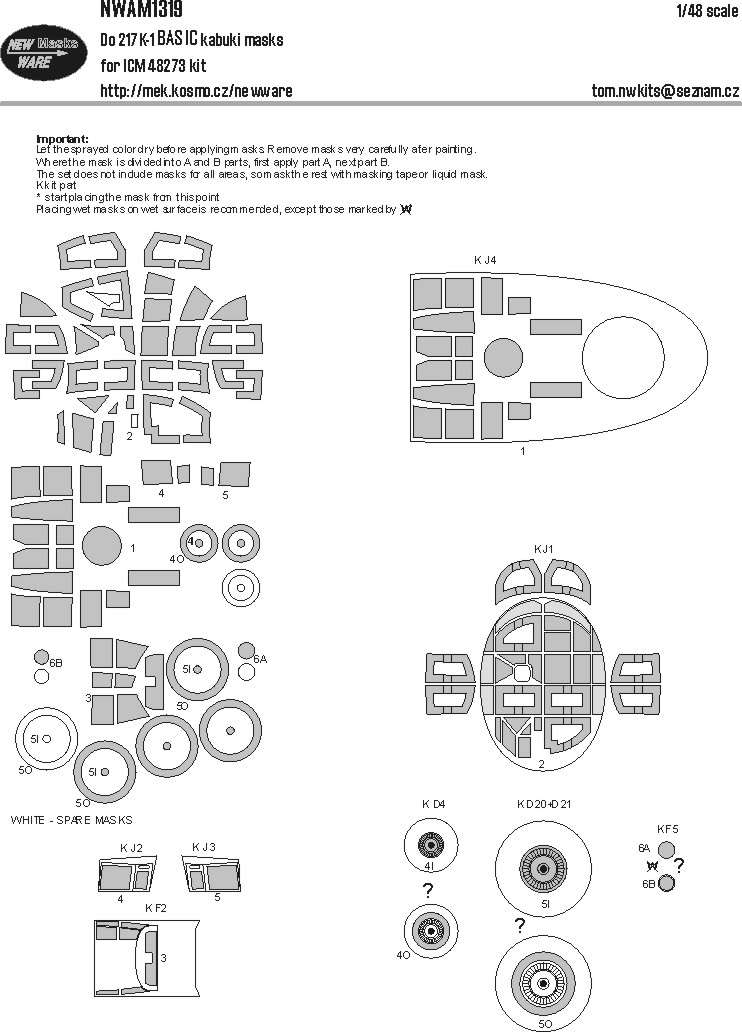 NEW WARE - 1/48 Mask Do-217K-1 BASIC for ICM 48273