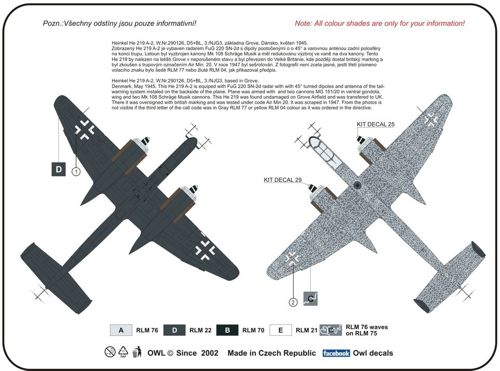 OWL Decals - 1/48 Scale Heinkel He 219 A-2 D5+BL