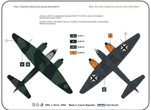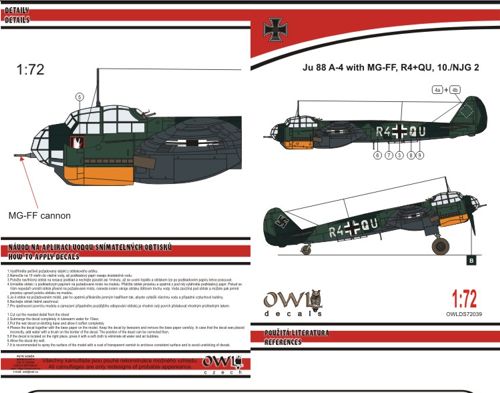 OWL Decals - 1/72 Junkers Ju 88A-4 with MGFF cannon (R4+QU NJG 2)