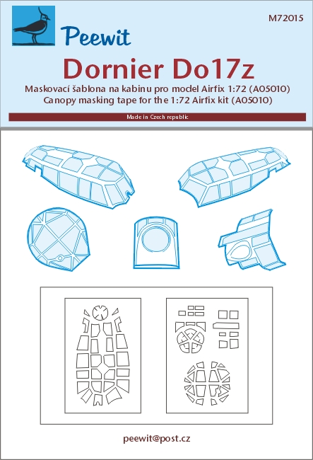 Peewit - 1/72 Dornier Do17Z canopies paint mask (designed to be used with the new Airfix kit)