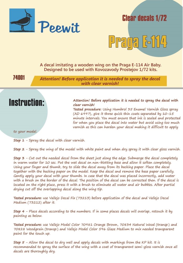 Peewit - 1/72 Praga E-114 (wooden wing decal - for Kovozavody Prostejov kits)