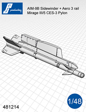 PJ Productions - 1/48 AIM-9B Sidewinder with pylon. Set of 2 missiles with Aero 3 rail and CES-3 pylons for Mirage III/5