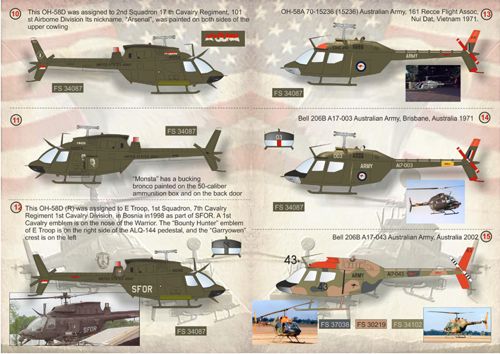12. This OH-58D (R) was assigned to E Troop, 1st Squadron, 7th Cavalry Regiment 1st Cavalry Division, in Bosnia in1998 as part of SFOR. A 1st Cavalry emblem is on the nose of the Warrior. The "Bounty Hunter" emblem of E Troop is on the right side of the ALQ-144 pedestal, and the "Garryowen" crest is on the left