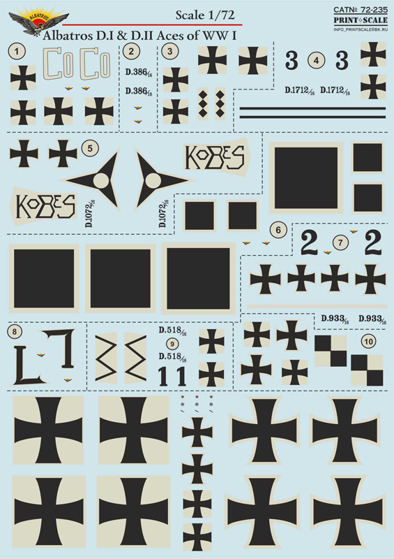 PRINT Scala - 1/72 Albatros D.I & D.II Aces of WWI (wet decals)