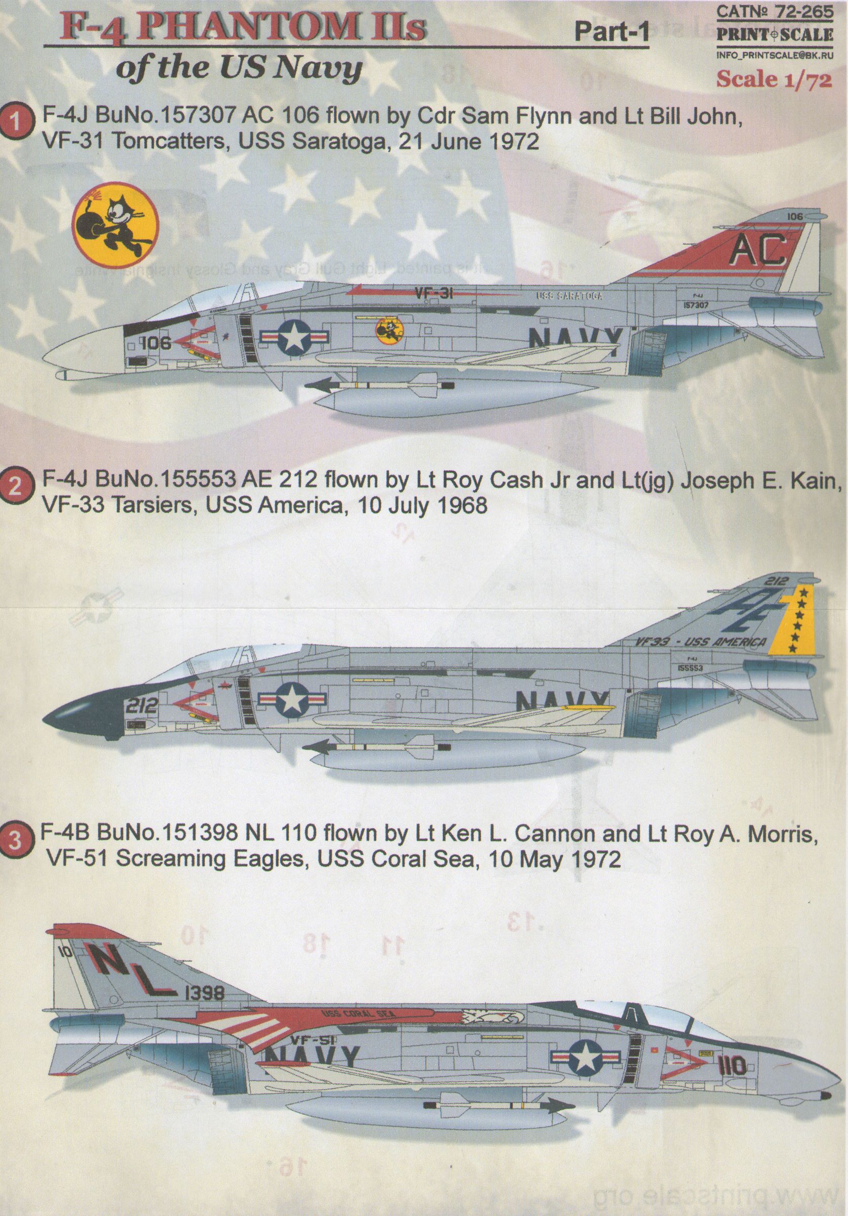 PRINT Scala - 1/72 F-4 Phantom IIs NAVY Part 1 (wet decals)
