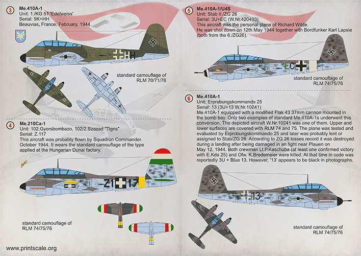 Print Scale - 1/72 Messerchmitt Me-210Ca-1 and Me-410A-1/Me-410B-2 Hornisse