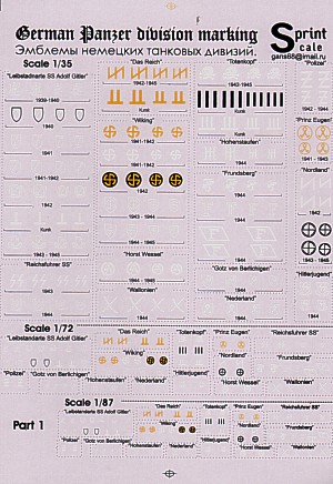 Print Scale - 1/35 Emblems tank division of Germany 1939-45. A part 1. The complete set contains all emblems tank division SS from 1935 to 1945. 1/87, 1/72, 1/35