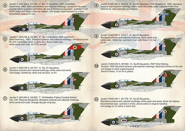 11. Javelin F(AW) Mk.7, XH 778, G , No.23 Squadron. Standard scheme and national markings, white code and serial. Silver air intakes, blue/red/blue bars, outlined in white, above serial on engine nacelles. Unit badge on fin within a white disc.