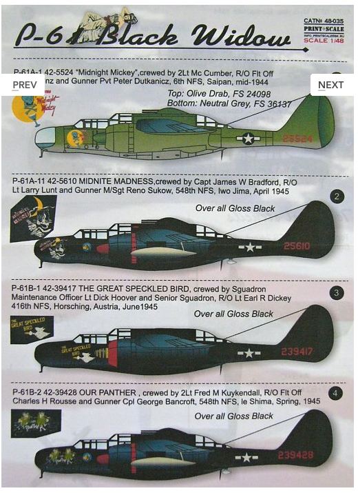 Print Scale - 1/48 P-61 Black Widow Part 2 (wet decals)