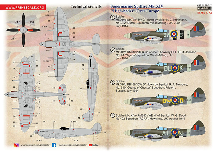 Print Scale - 1/72 Supermarine Spitfire Mk.XIV 'High Backs' Over Europe