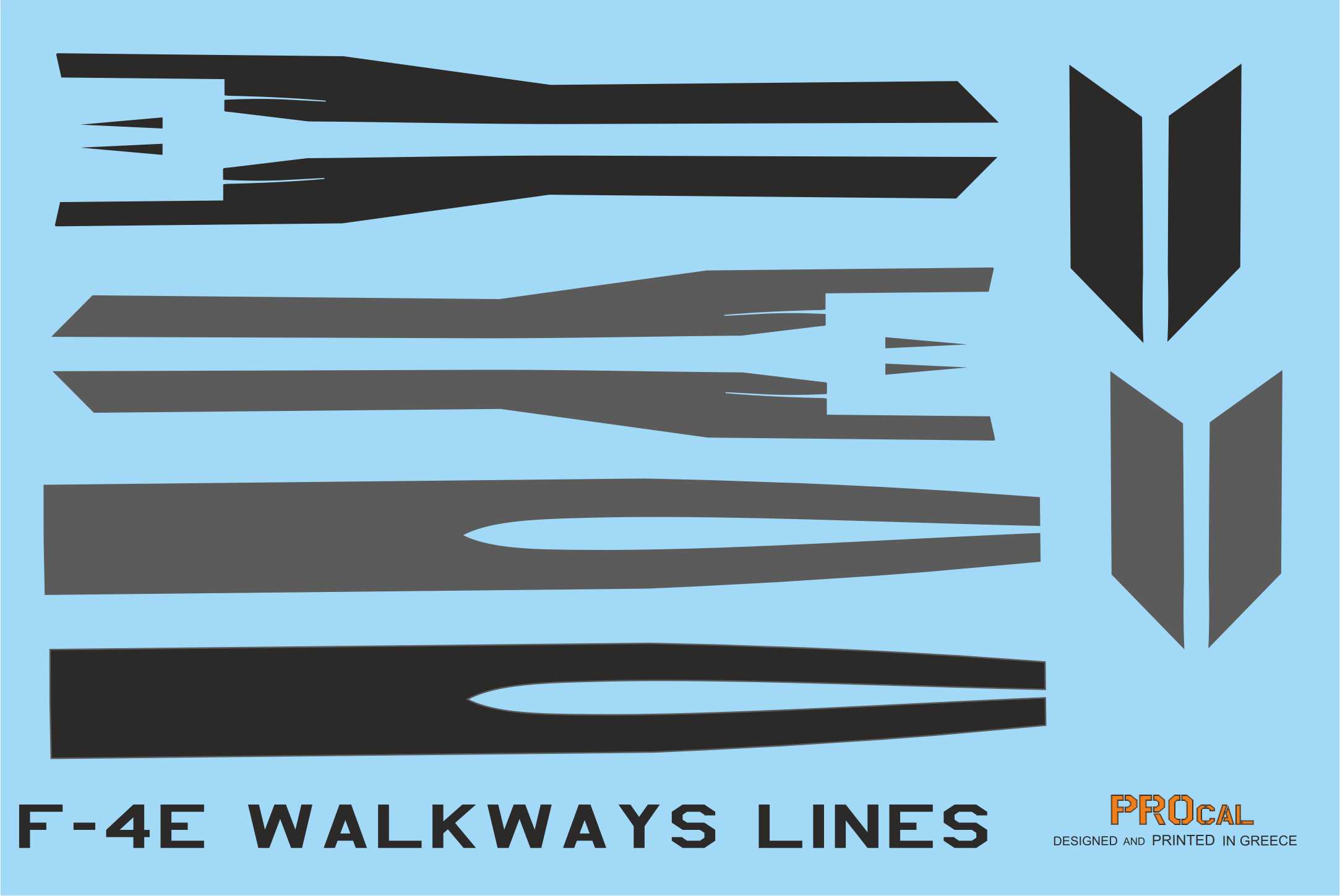 The design of decals can cover Almost most F-RF/4E camos . The colors of walkways are black and dark gray (tire black) and combinated with the Black Dark Gray and White Lines you can have almost any type of Es walkways Even For Greek F-4E Aup (the dark gray lines)