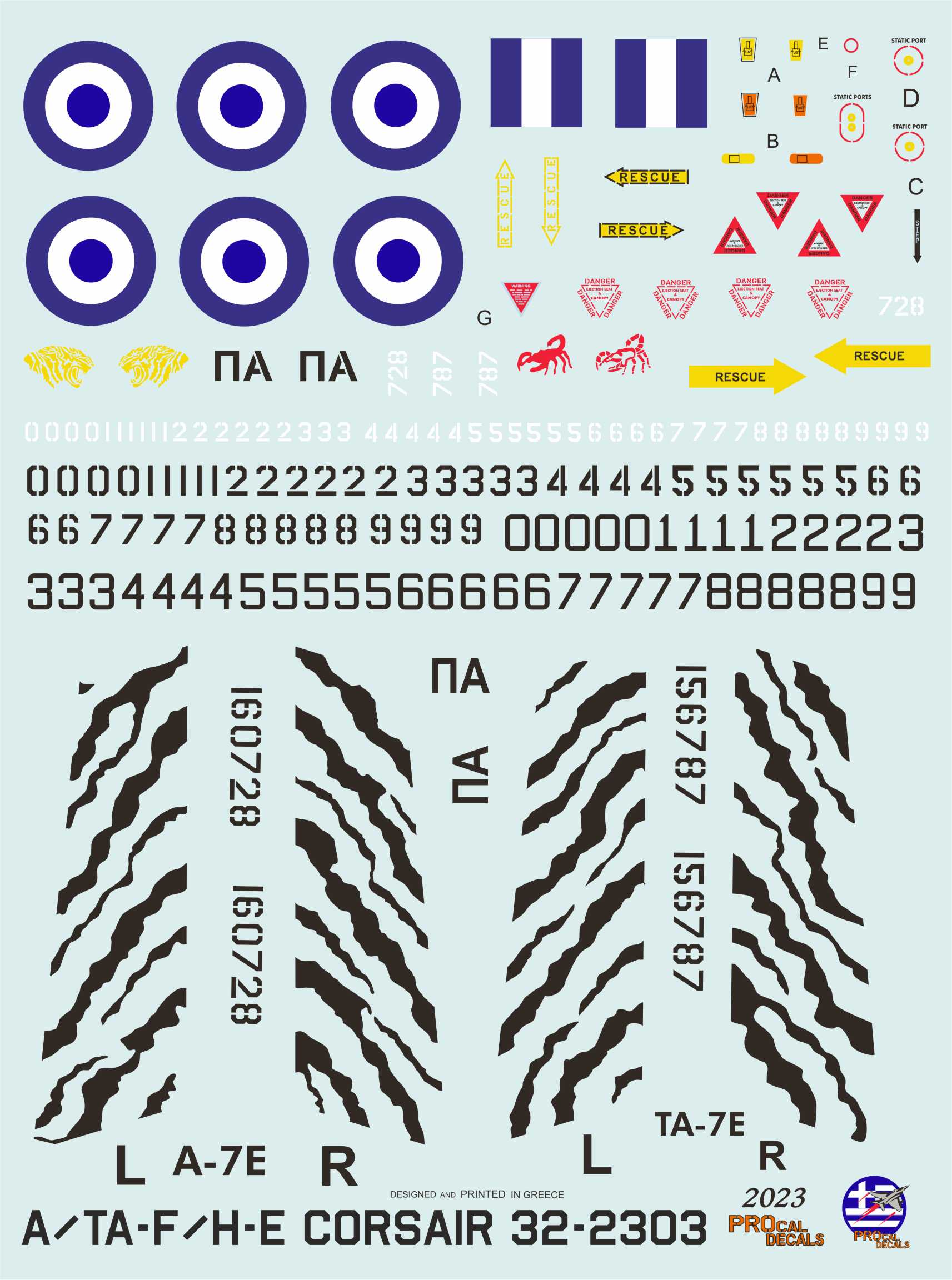 Procal Decals - 1/32 Vought A-7/TA-7 Corsair Greek Air Force