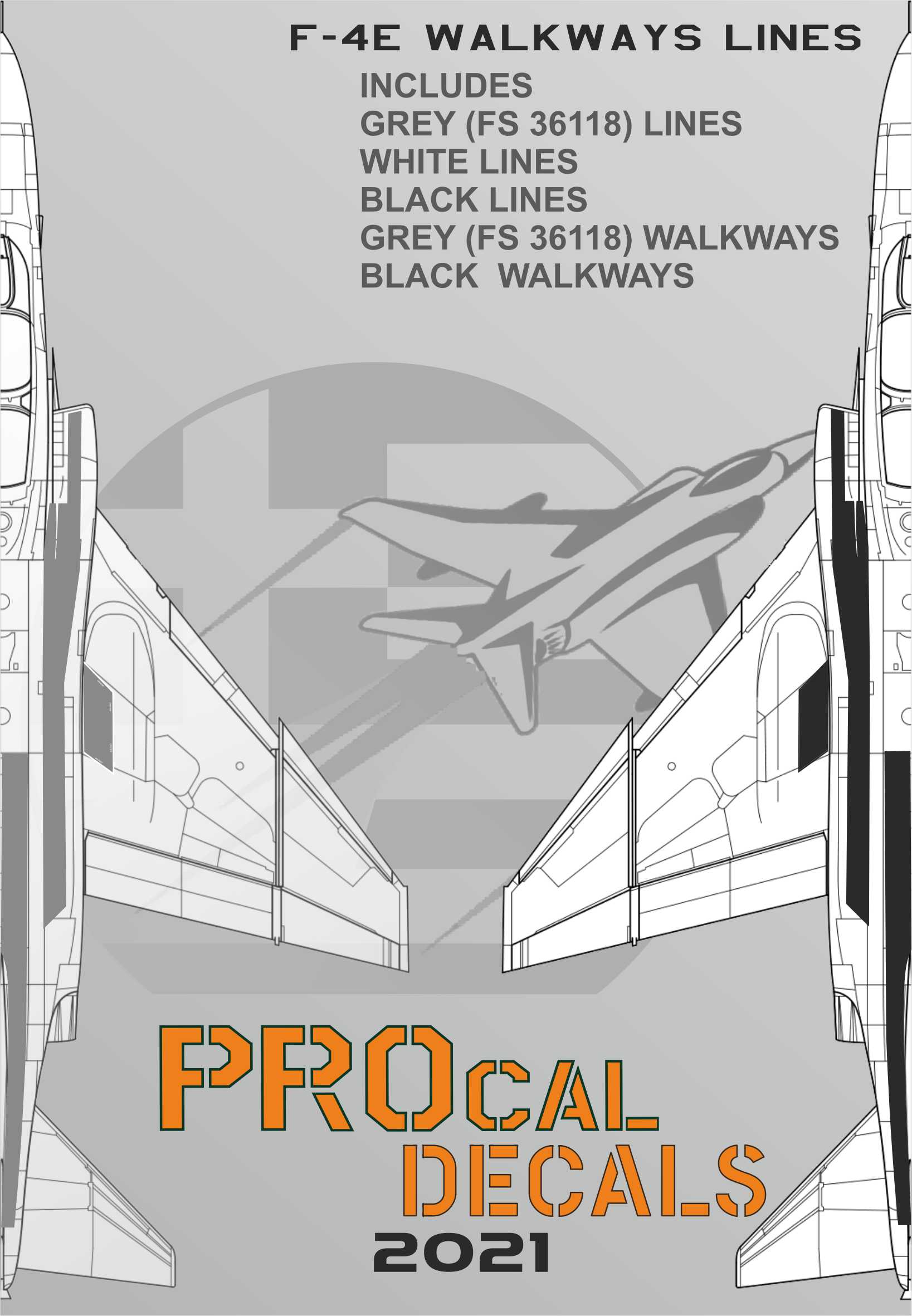 The design of decals can cover Almost most F-RF/4E camos . The colors of walkways are black and dark gray (tire black) and combinated with the Black Dark Gray and White Lines you can have almost any type of Es walkways Even For Greek F-4E Aup (the dark gray lines)