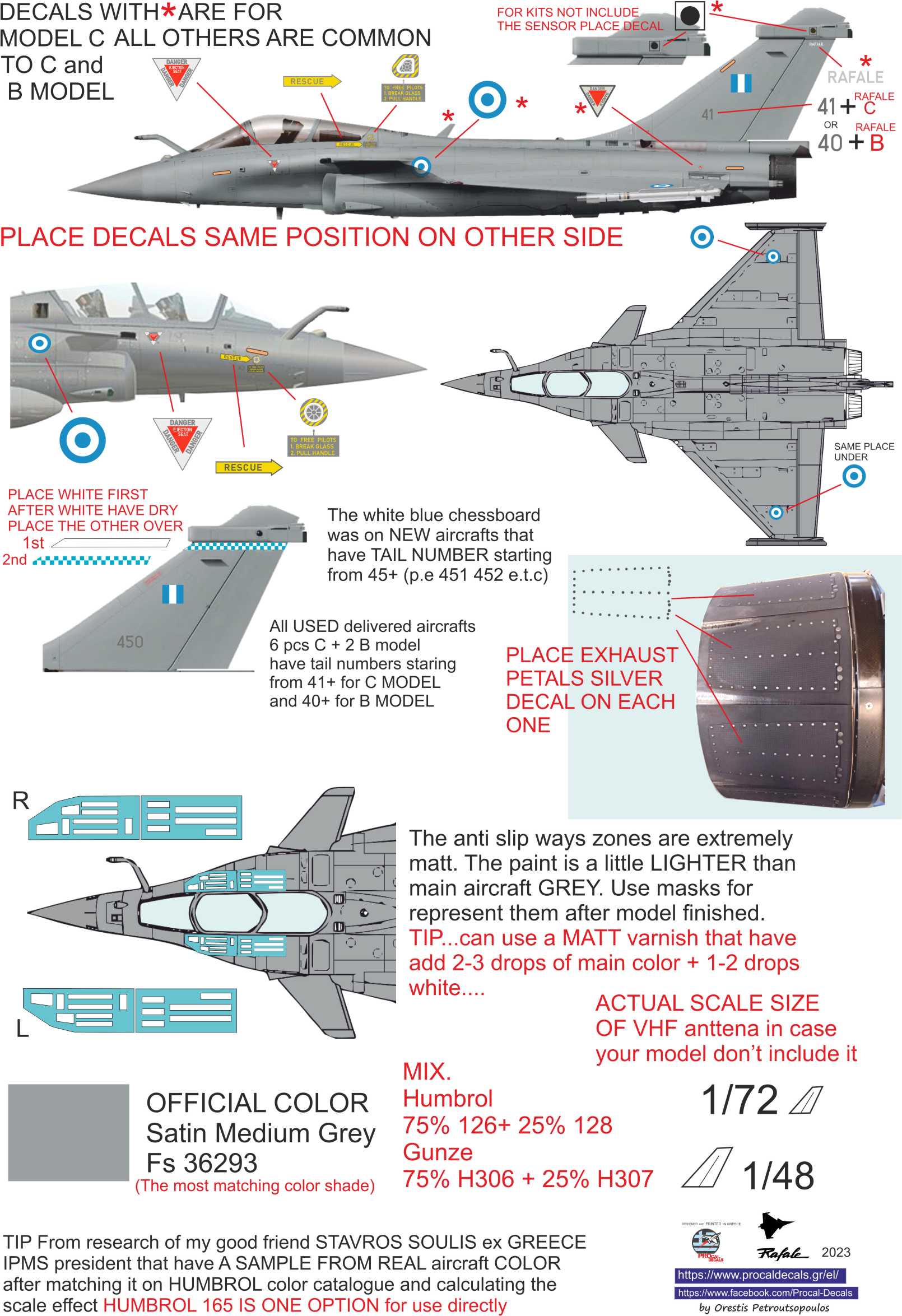 Procal Decals - 1/48 Greek Dassault Rafale insignias and basic stencils. With the english version Rescue basic stencils and insignias for Rafale single and two seat planes and numbers For First delivered used planes And The brand New with the squadrons chessboard mark on tail.