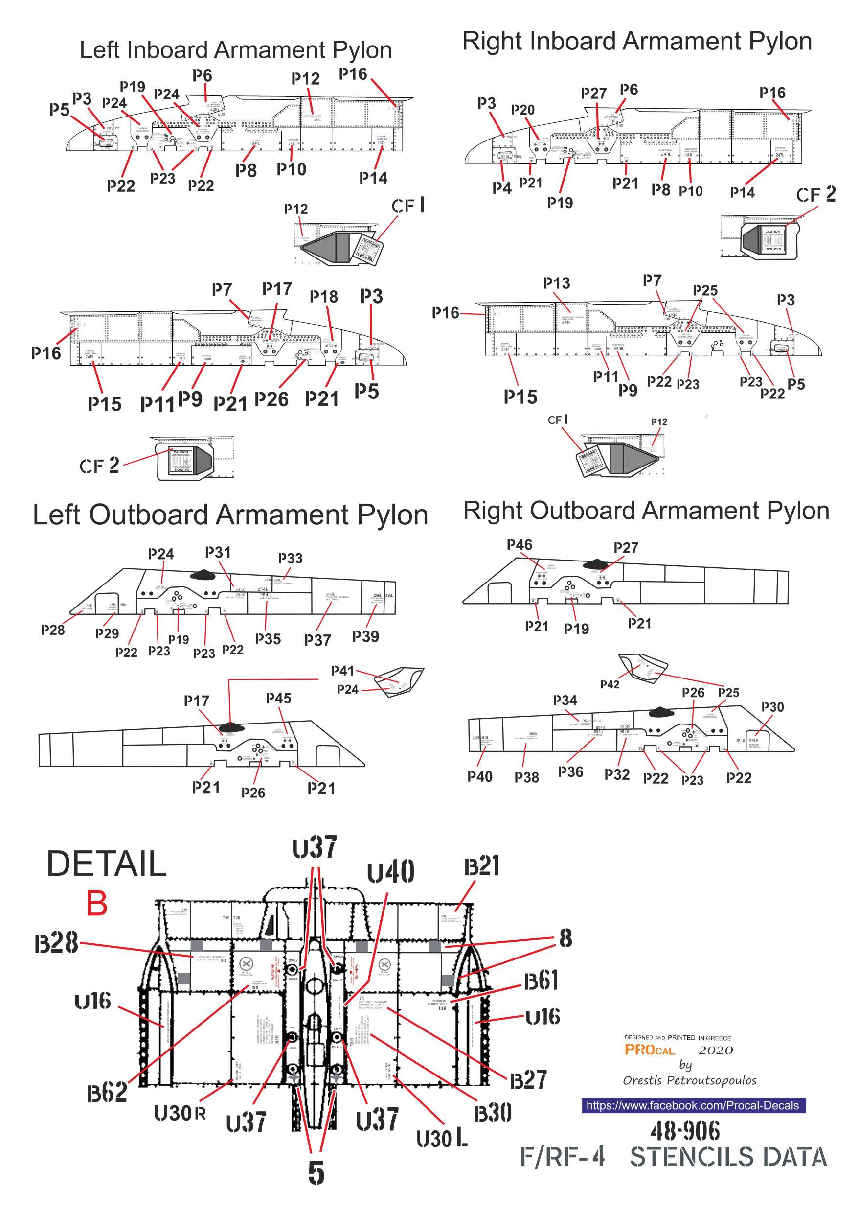 Procal Decals - 1/48 Grey Greek Air Force McDonnell F-4E and RF-4E Phantoms stencil data