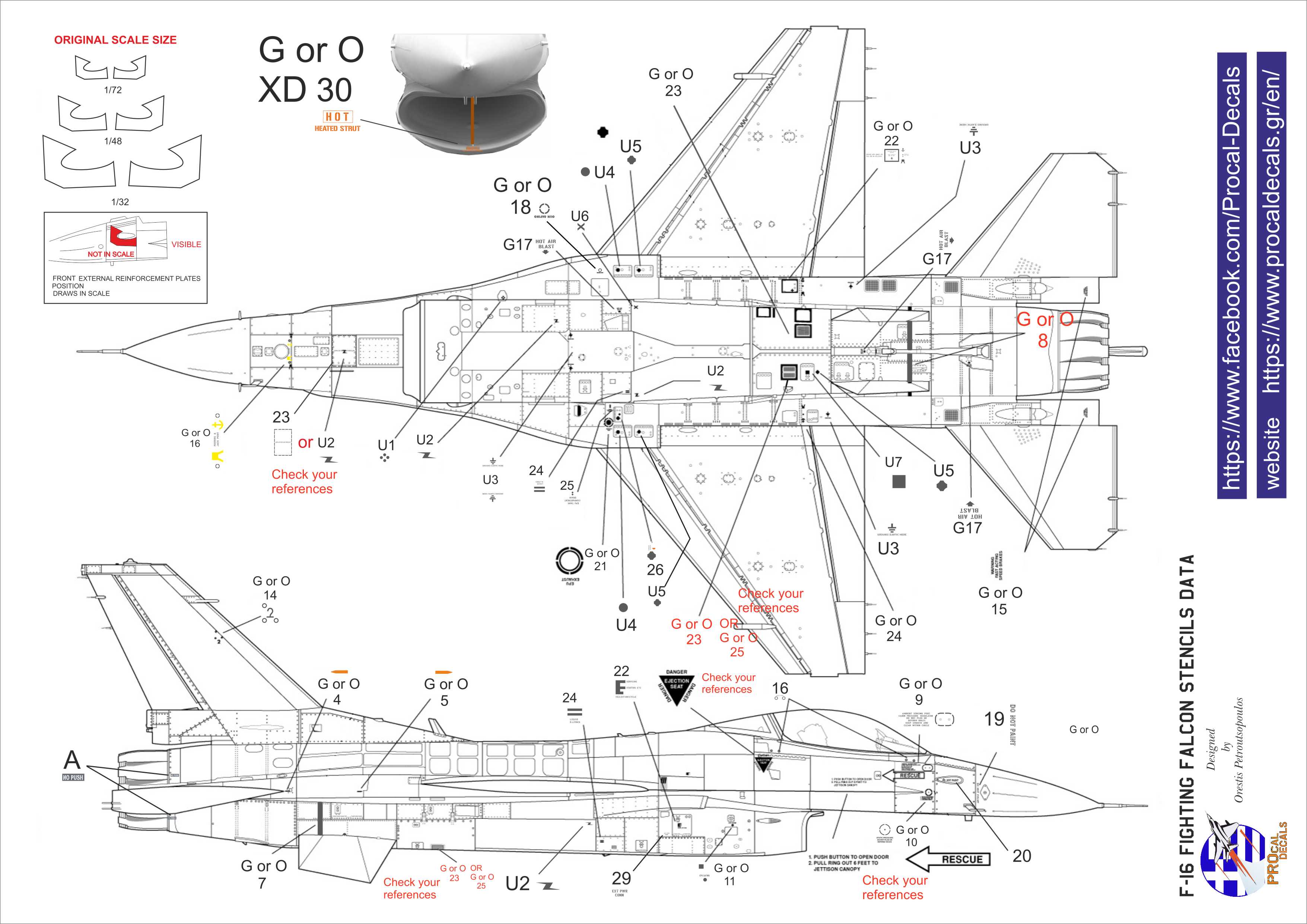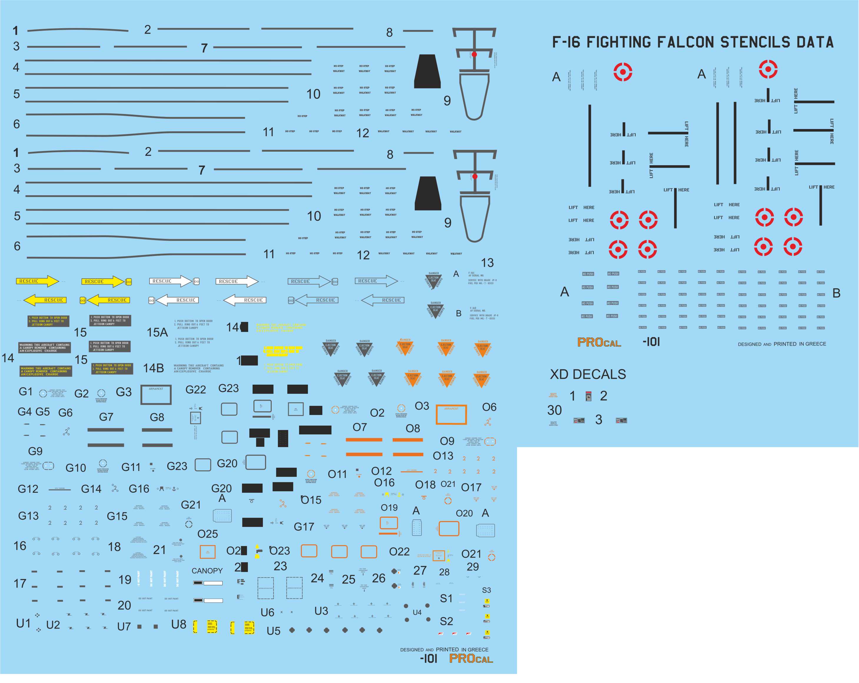 Procal Decals - 1/72 F-16 Viper Stencils DATA