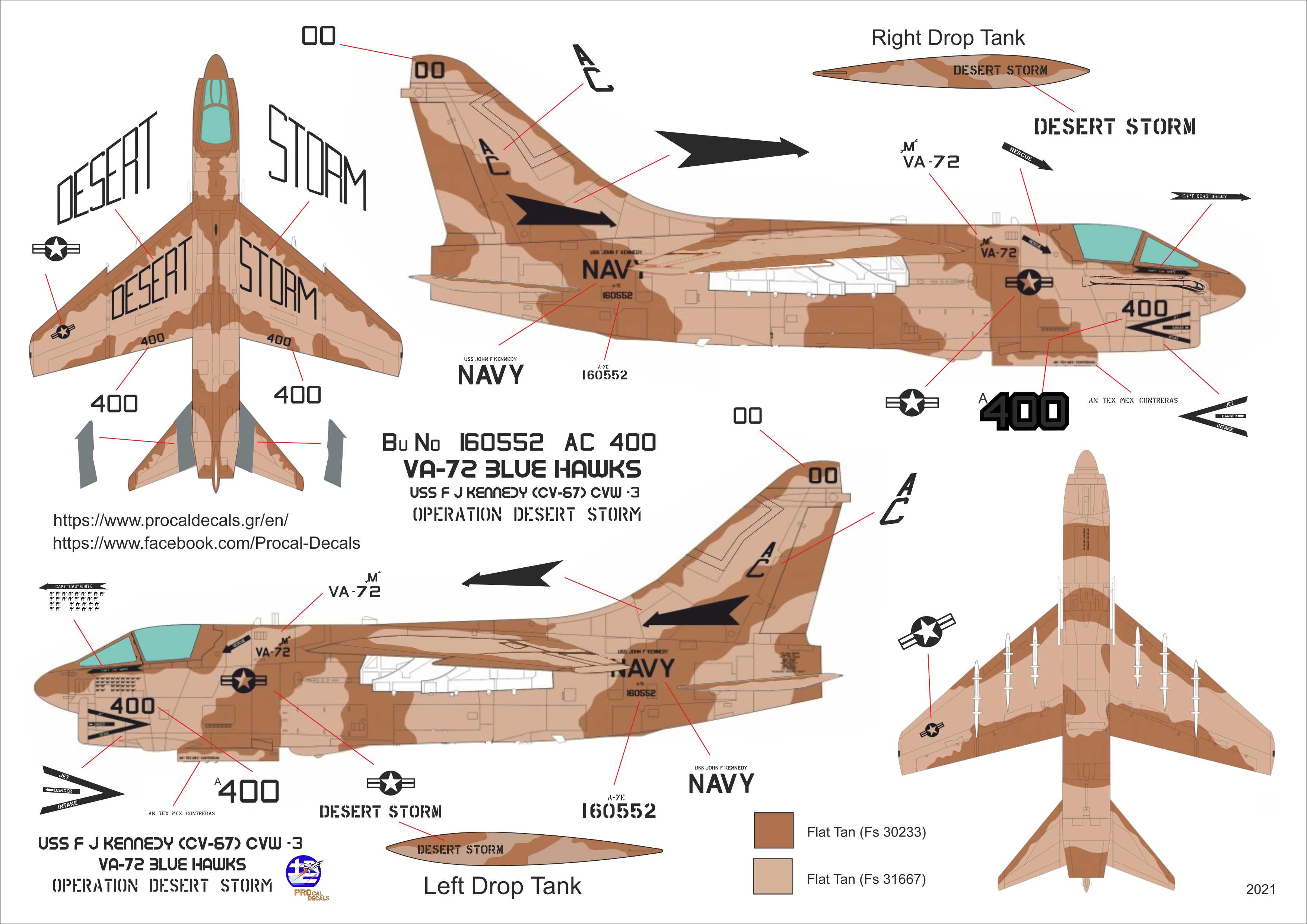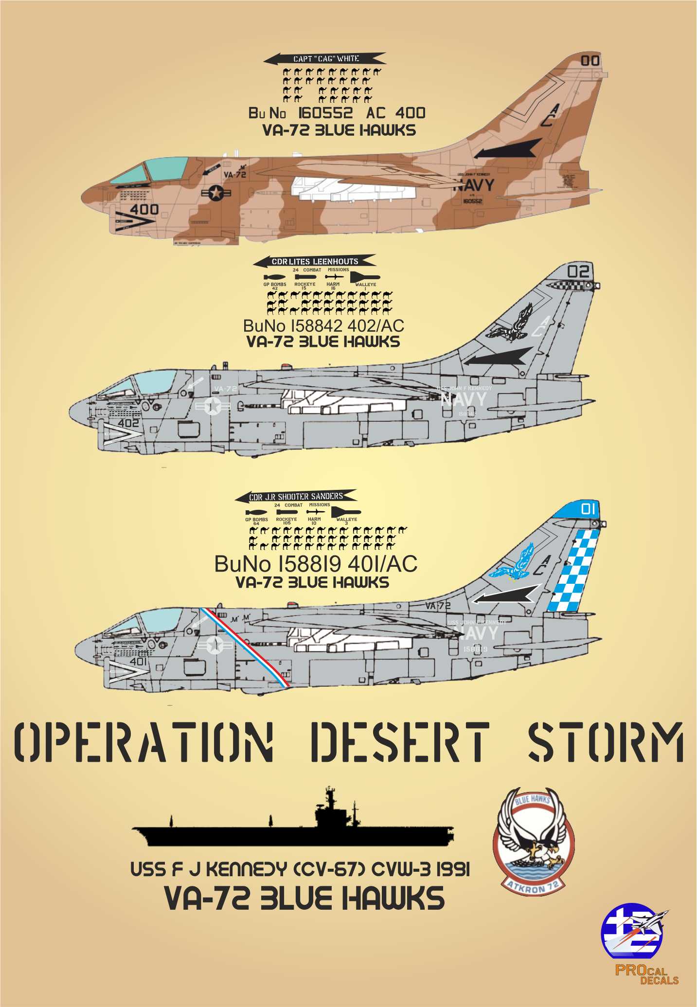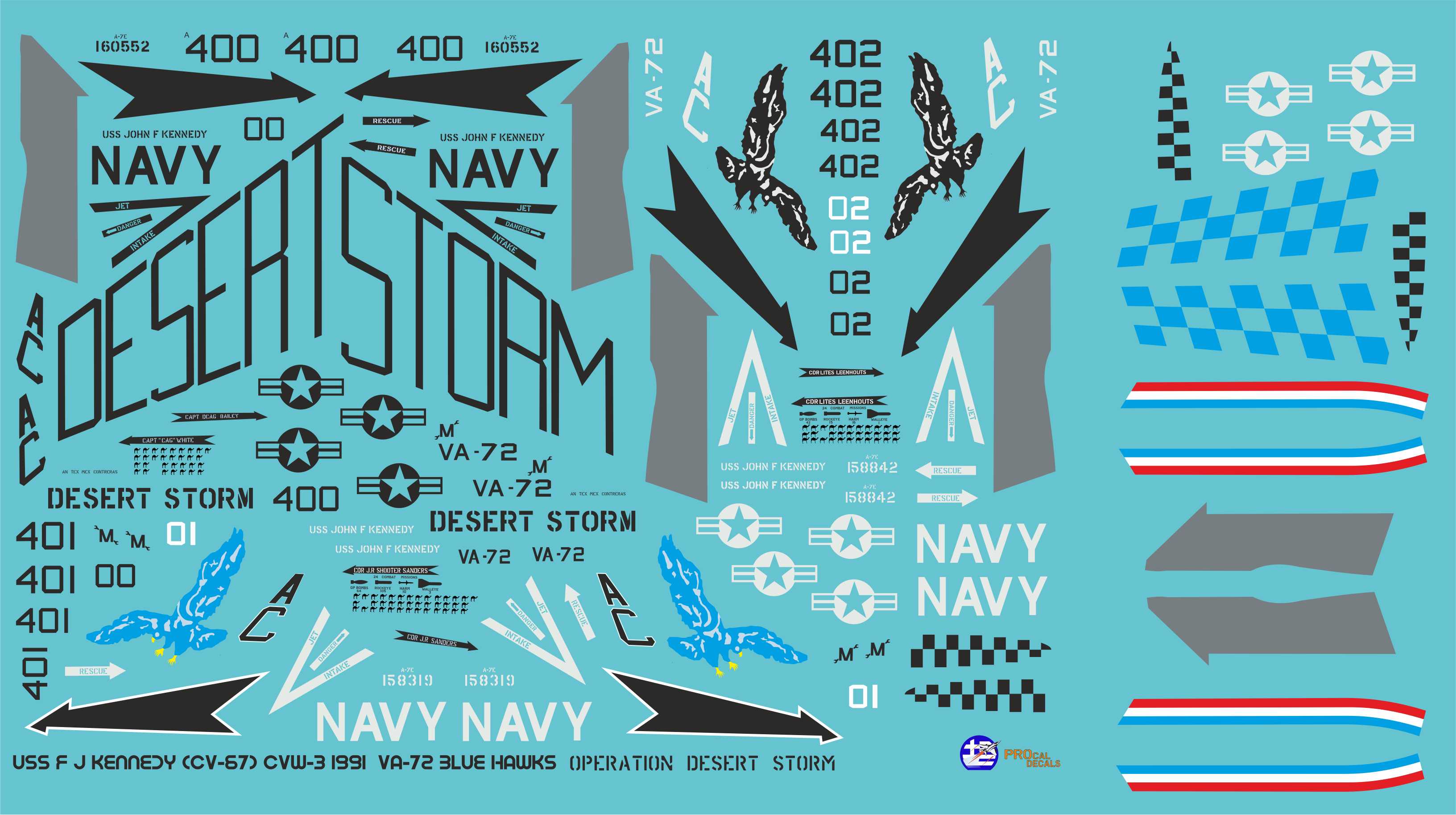 Procal Decals - 1/72 Vought A-7E Corsair Uss J.F. Kennedy VA-72 Blue Hawks Operation Desert STORM