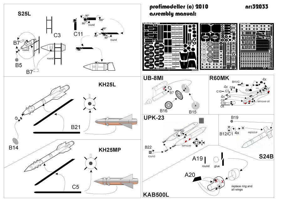 Profimodeller - 1/32 Su-25 Bombs, rockets PE set (TRUMP)