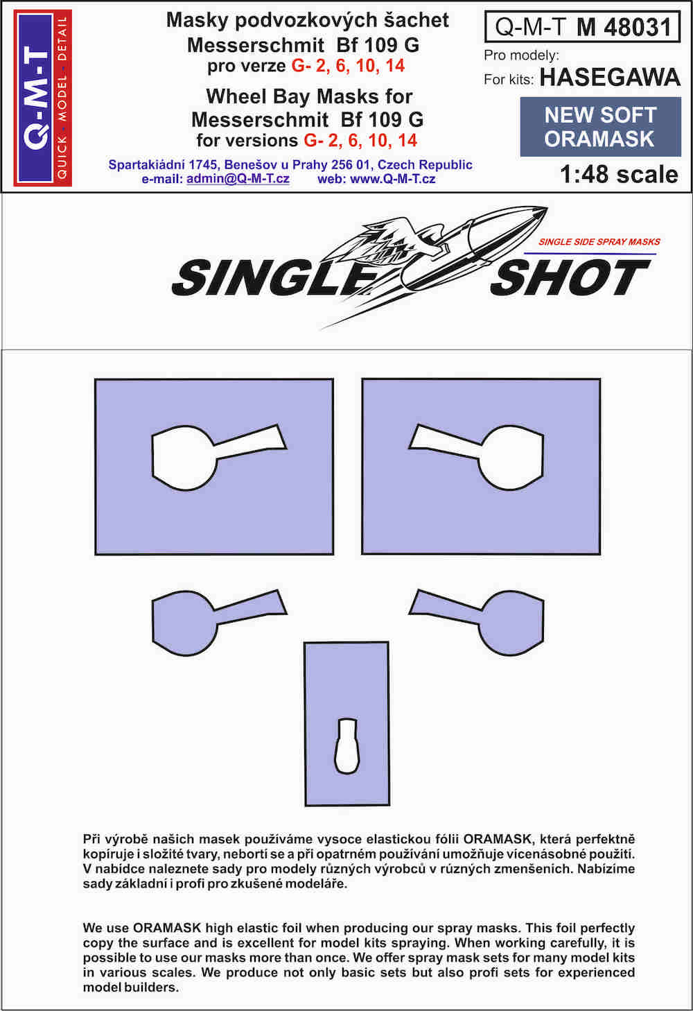 Q-M-T - 1/48 Messerschmitt Bf-109G-2/Bf-109G-6/Bf-109G-10/Bf-109G-14 wheel bay paint masks (for Hasegawa kits) made from New Soft Oramask