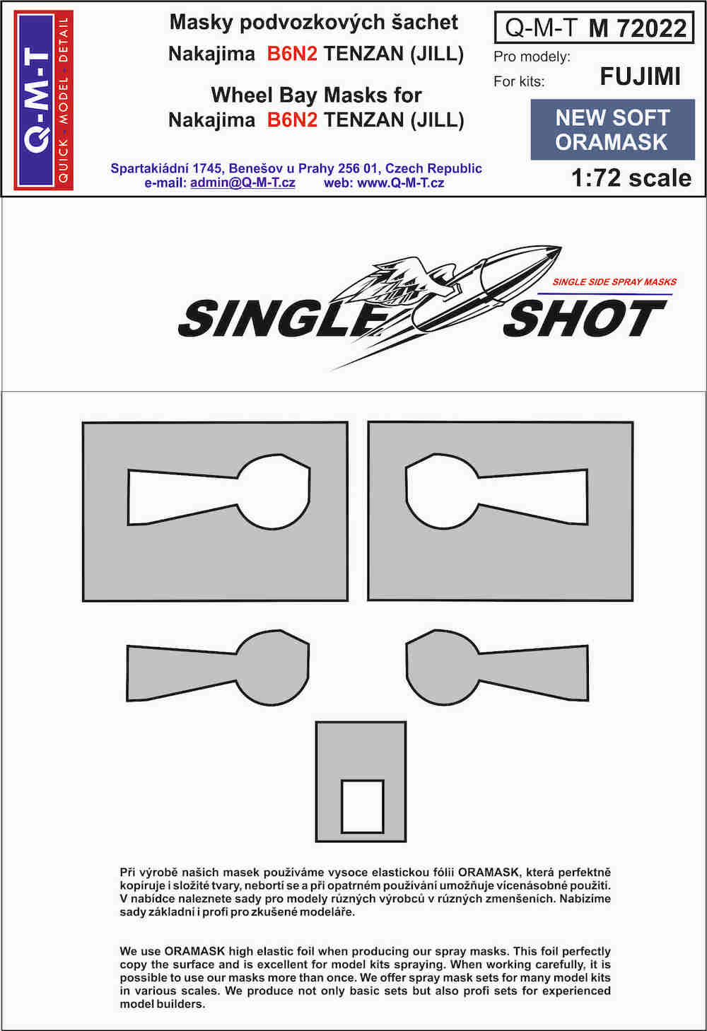 Q-M-T - 1/72 Nakajima B6N2 Jill wheel bay paint masks (for Fujimi kits) made from New Soft Oramask