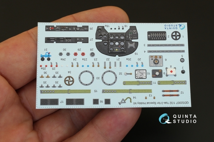 Quinta Studio - 1/32 Yakovlev Yak-3 3D-Printed & coloured Interior on decal paper (for Special Hobby kits)