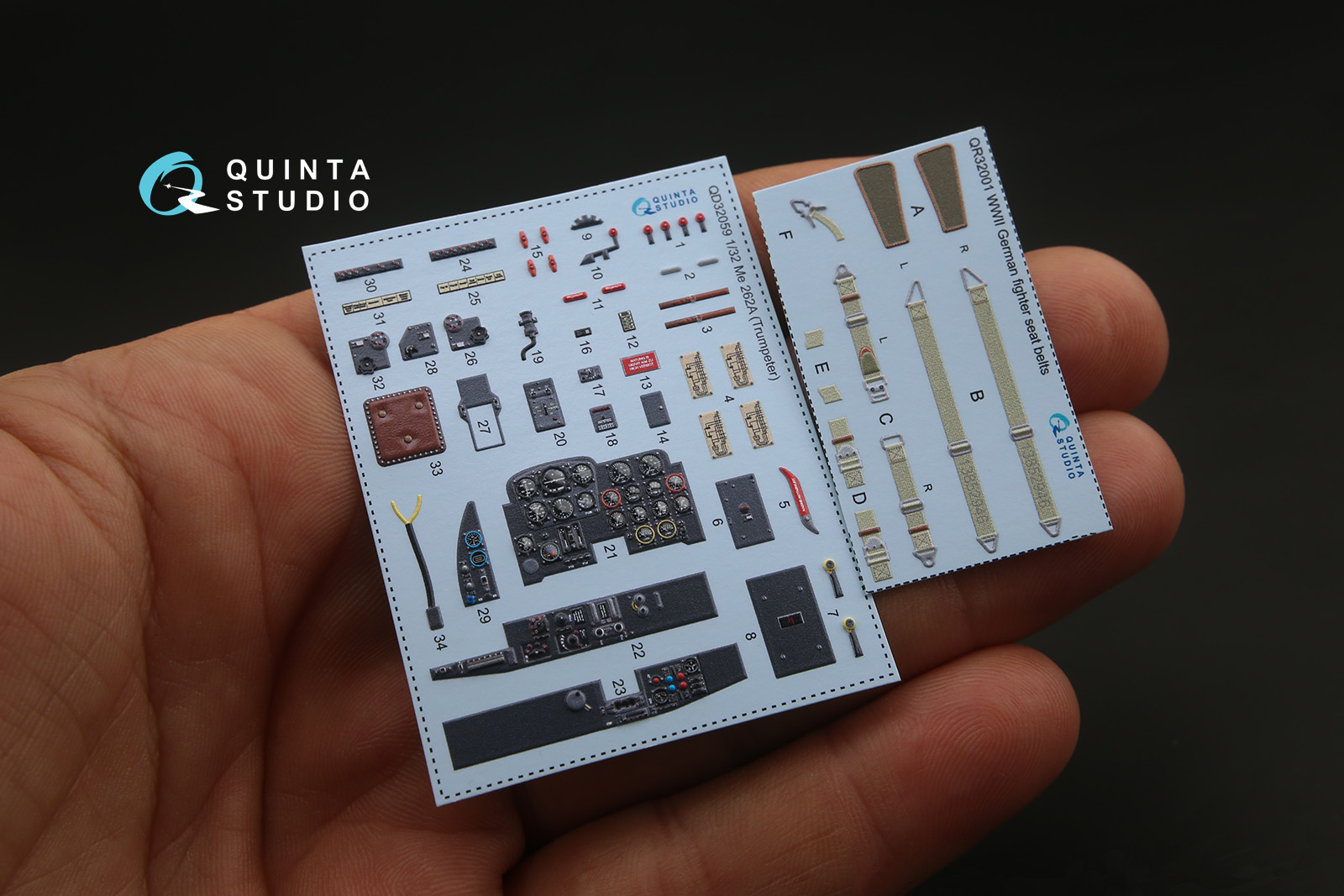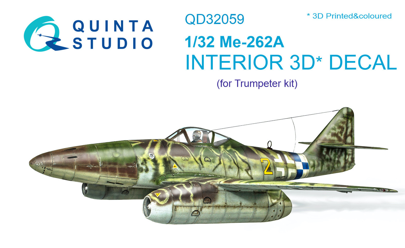Quinta Studio - 1/32 Messerschmitt Me-262A-1a 3D-Printed & coloured Interior on decal paper (for Trumpeter kits)