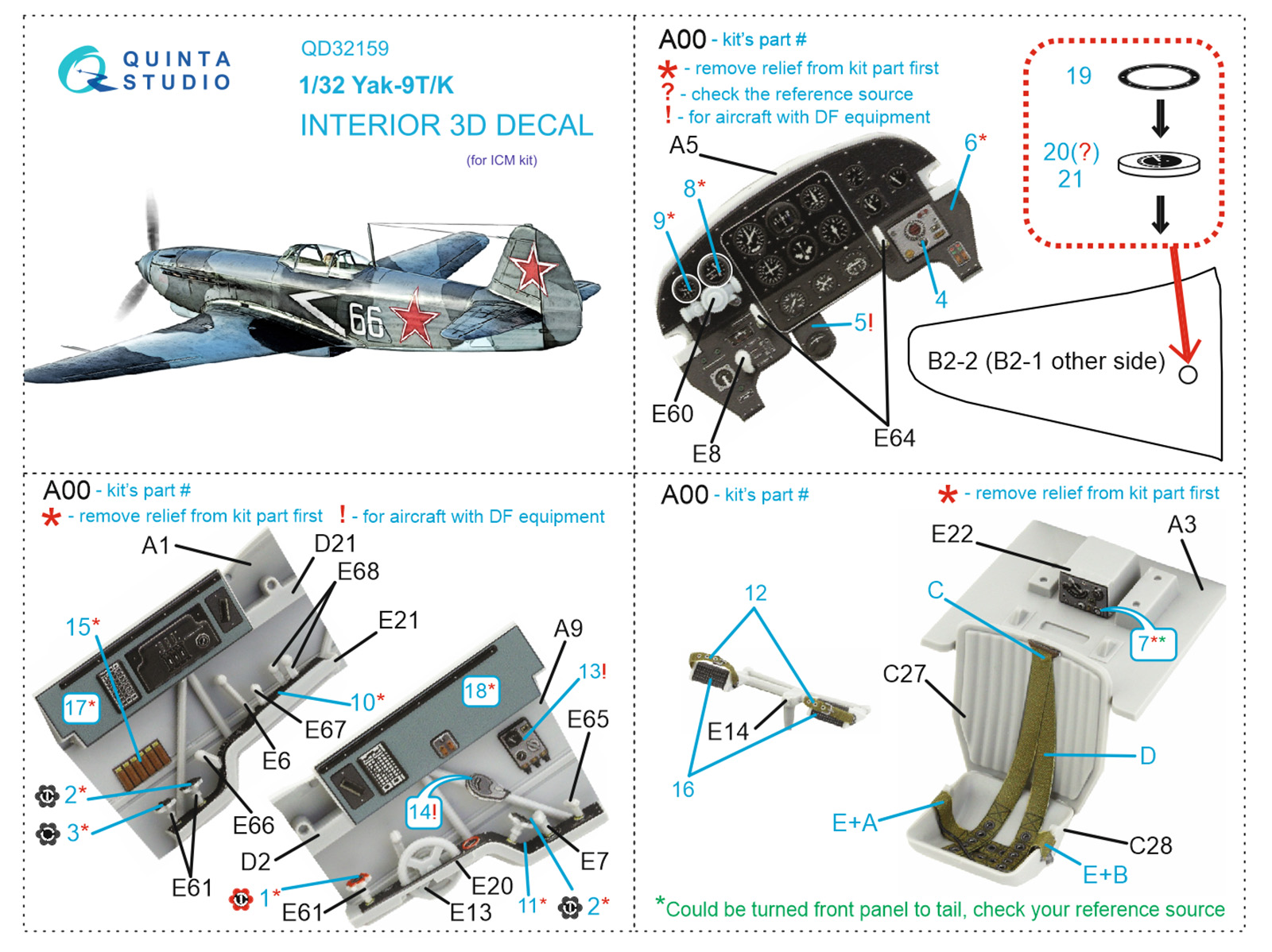 Quinta Studio - 1/32 Yakovlev Yak-9T/Yak-9K 3D-Printed & coloured Interior on decal paper (for Icm kits)