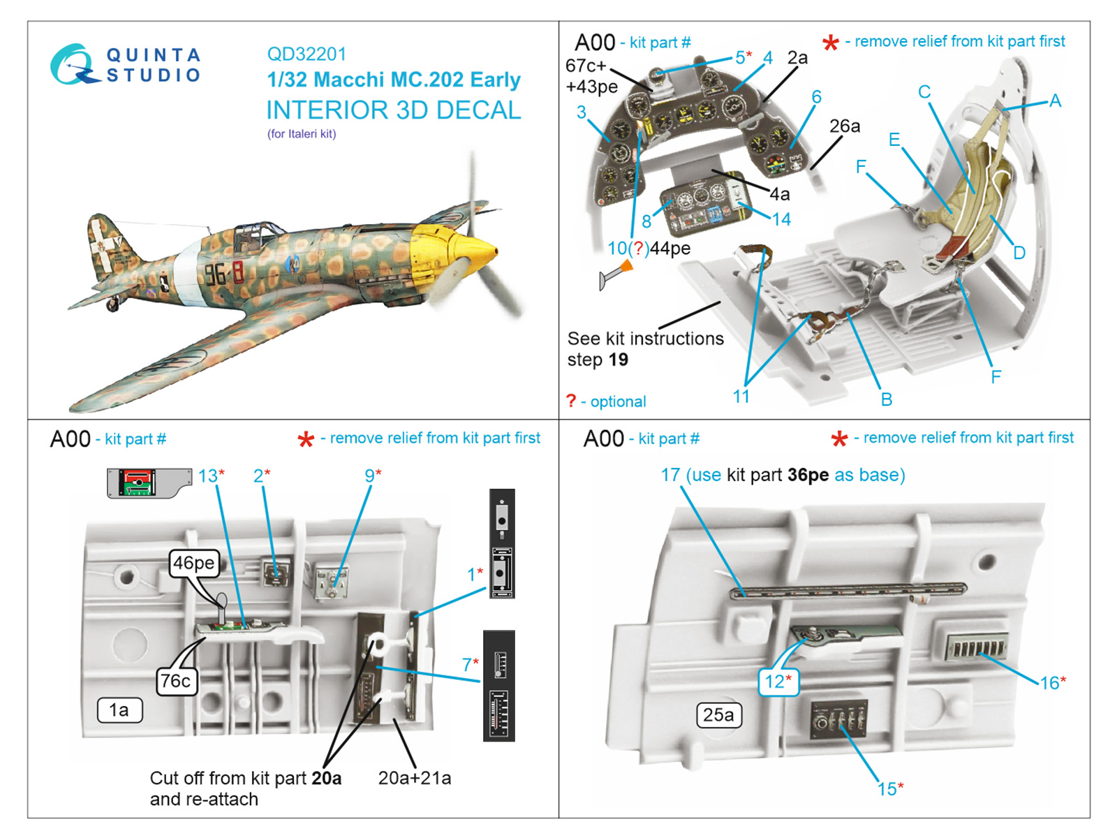 Quinta Studio - 1/32 Macchi MC.202 Folgore Early 3D-Printed & coloured Interior for Italeri