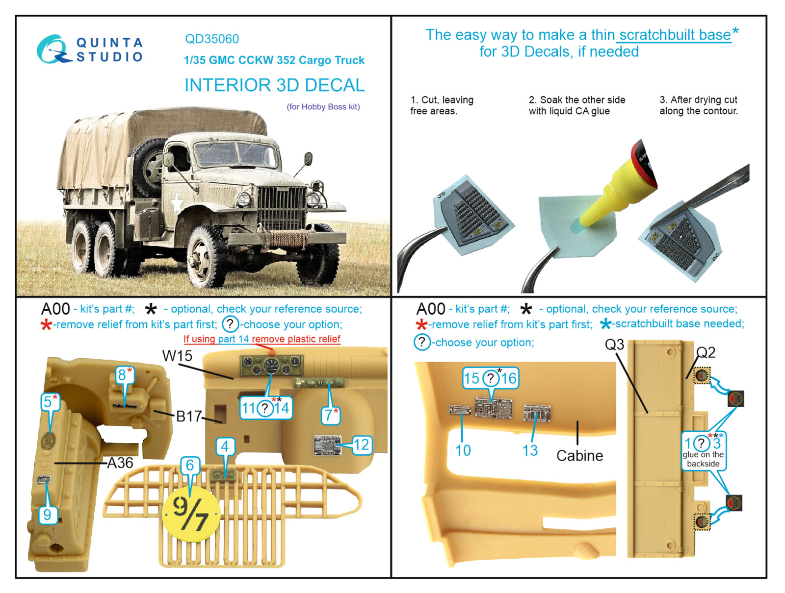QUINTA STUDIO - 1/35 GMC CCKW 352 Cargo Truck 3D-Printed & color Interior