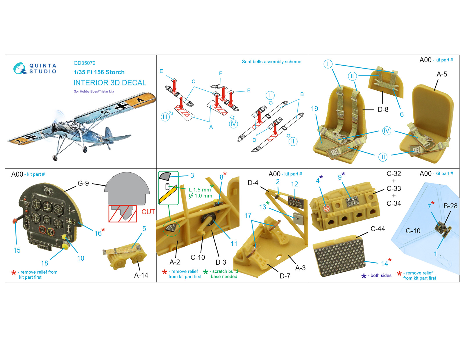 QUINTA STUDIO - 1/35 Fi 156C 3D-Printed & color Interior (HOBBYB)