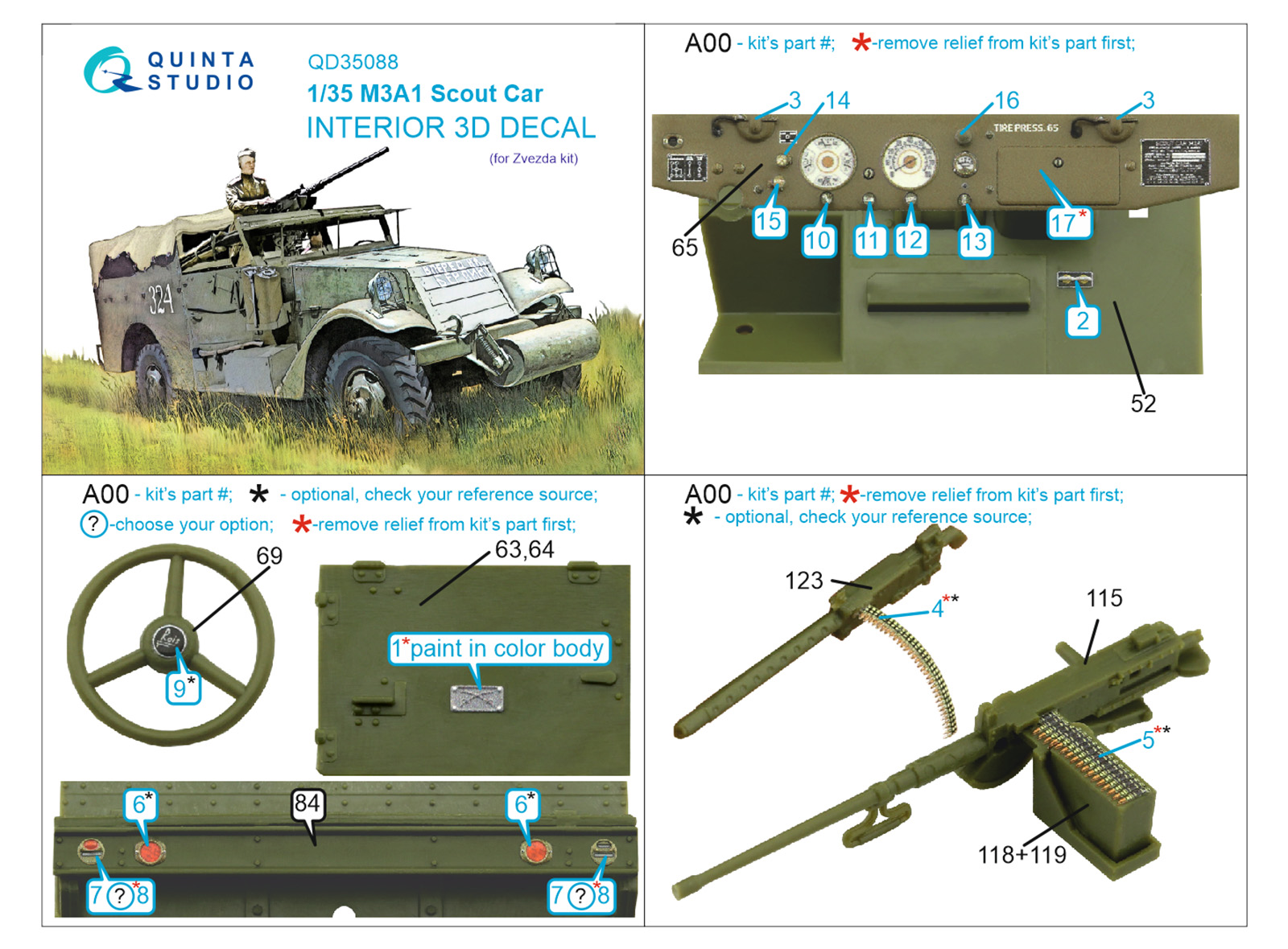 Quinta Studio - 1/35 M3A1 Scout 3D-Printed & coloured Interior on decal paper (for Zvezda kits)