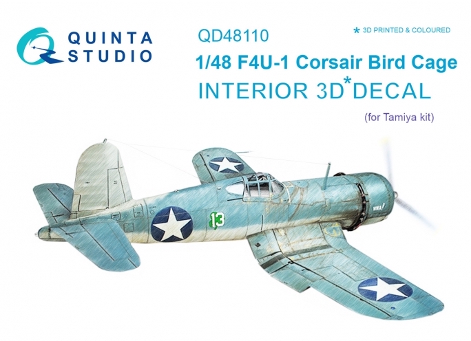 Quinta Studio - 1/48 Vought F4U-1 Corsair (Bird cage) 3D-Printed & coloured Interior on decal paper (for Tamiya kits)