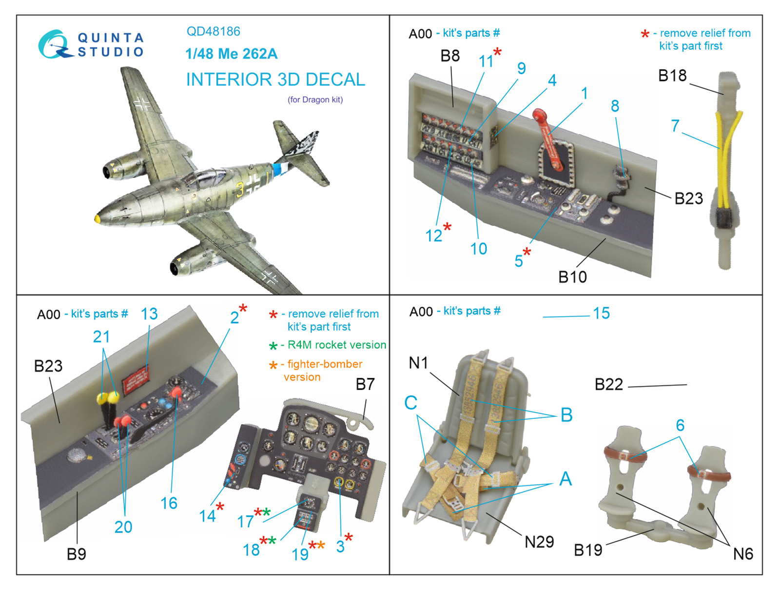 QUINTA STUDIO - 1/48 Me 262A 3D-Printed & color Interior (DRAG)