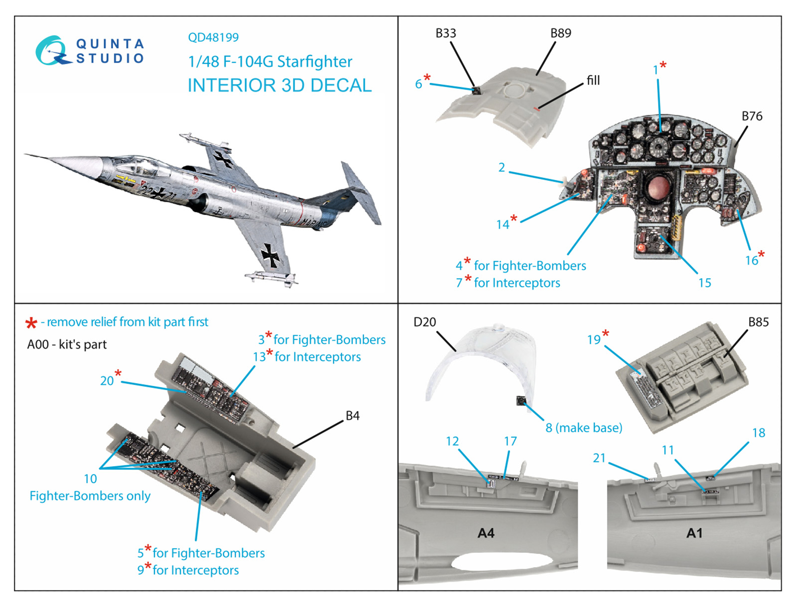 Quinta Studio - 1/48 Lockheed F-104G Starfighter 3D-Printed & coloured Interior on decal paper (for Kinetic Model kits)