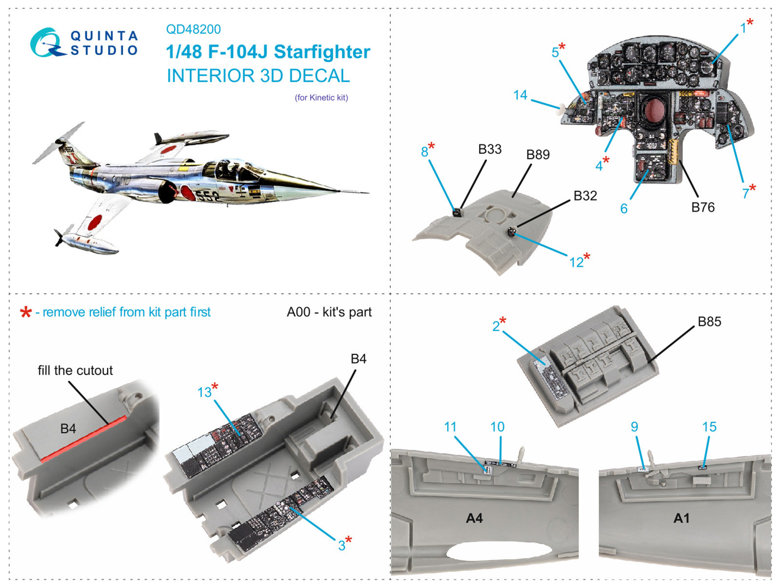 Quinta Studio - 1/48 Lockheed F-104J Starfighter 3D-Printed & coloured Interior on decal paper (for Kinetic kits)