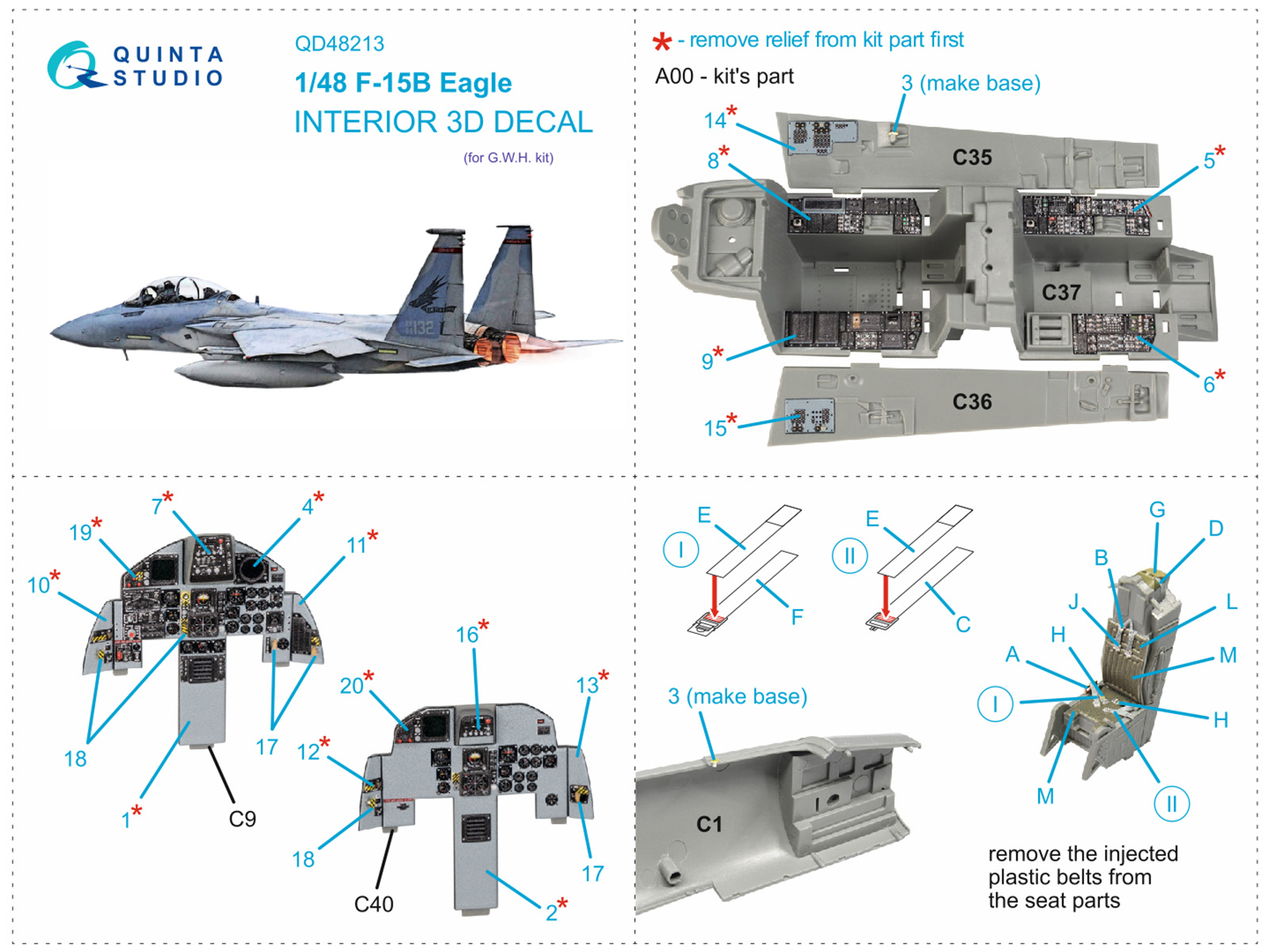 QUINTA STUDIO - 1/48 F-15B 3D-Printed & color Interior (GWH)
