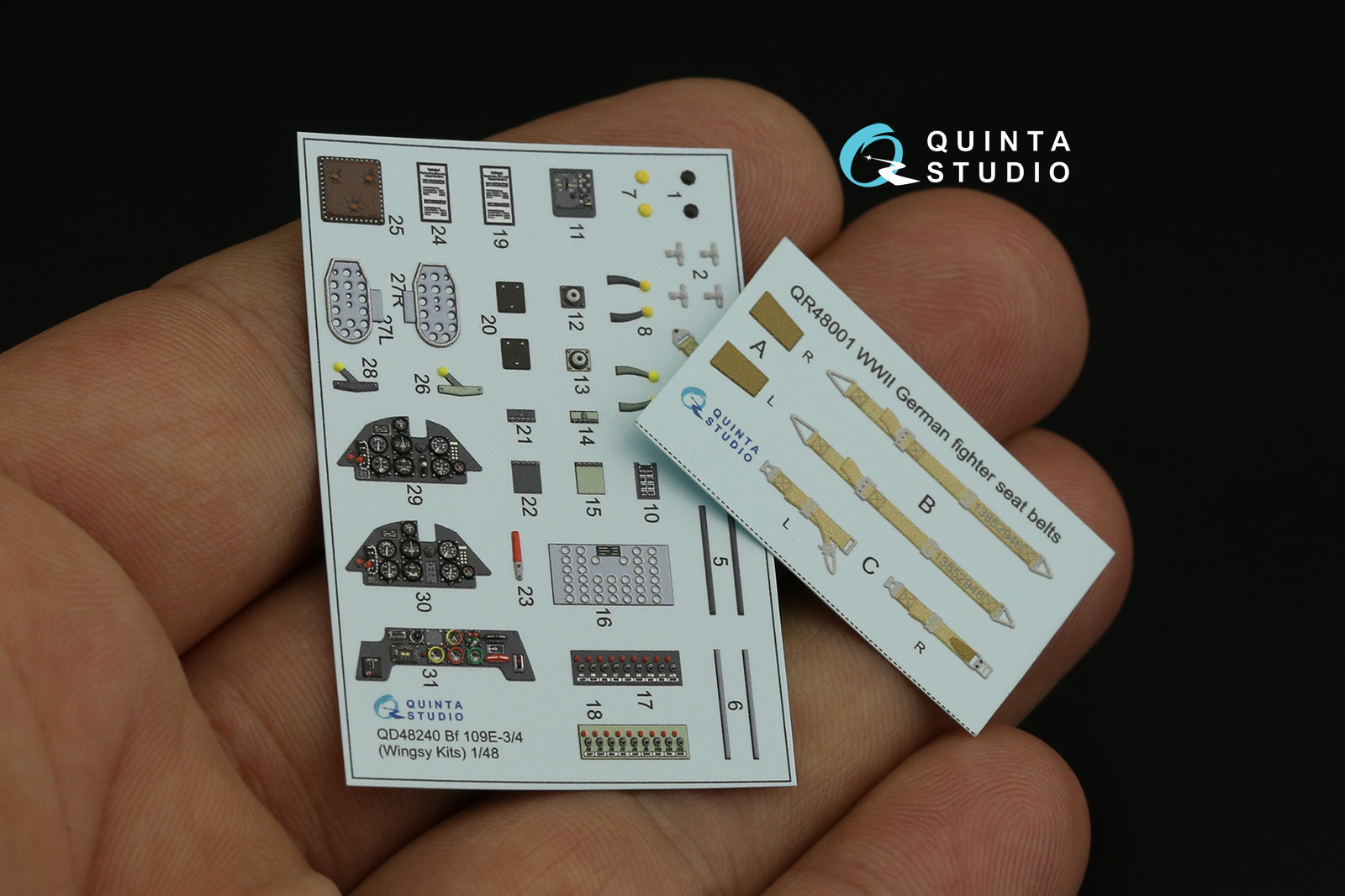 Quinta Studio - 1/48 Messerschmitt Bf-109E-3/4 3D-Printed & coloured Interior on decal paper (for Wingsy kits kits)