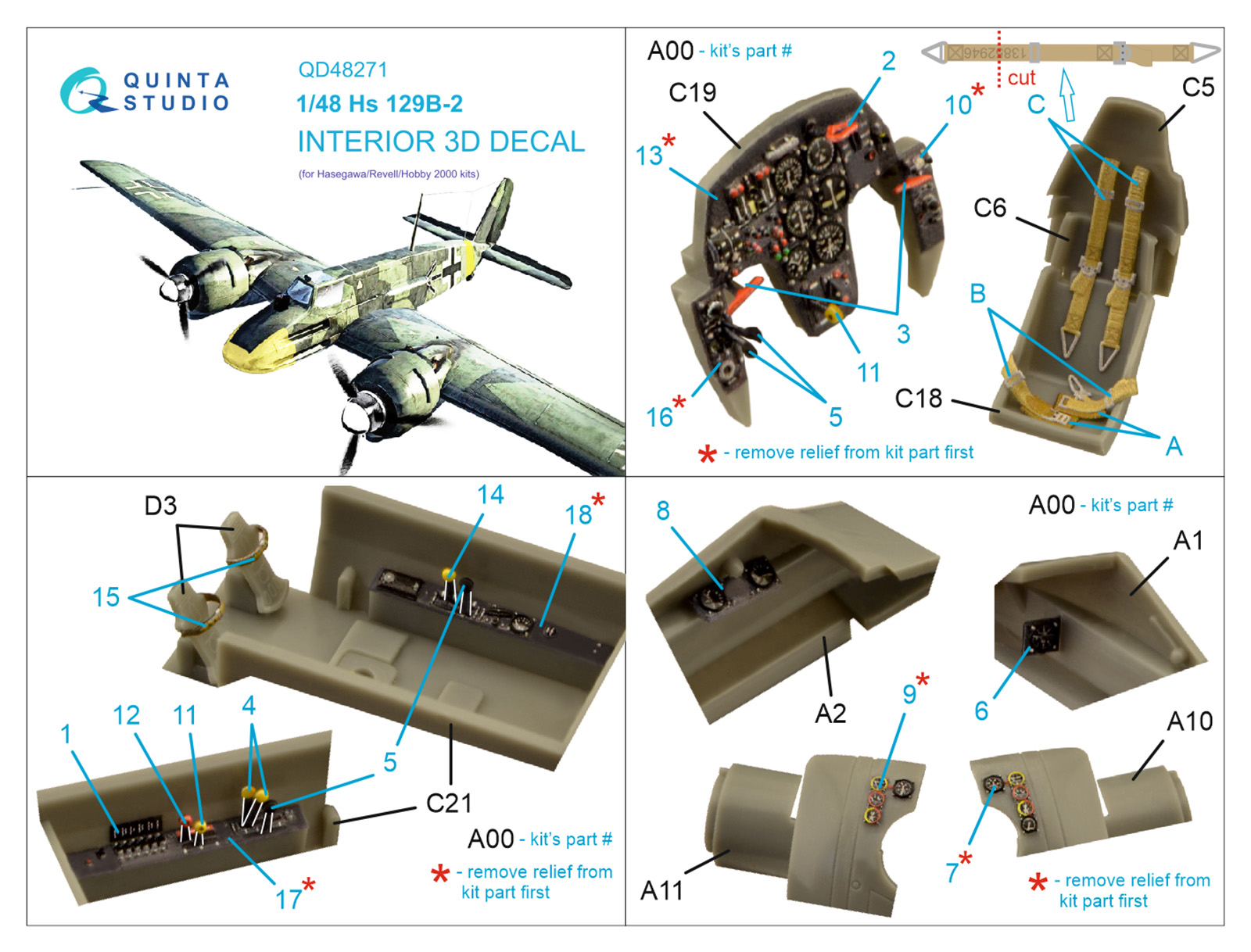 QUINTA STUDIO - 1/48 Hs 129B-2 3D-Print & color Interior (HAS)