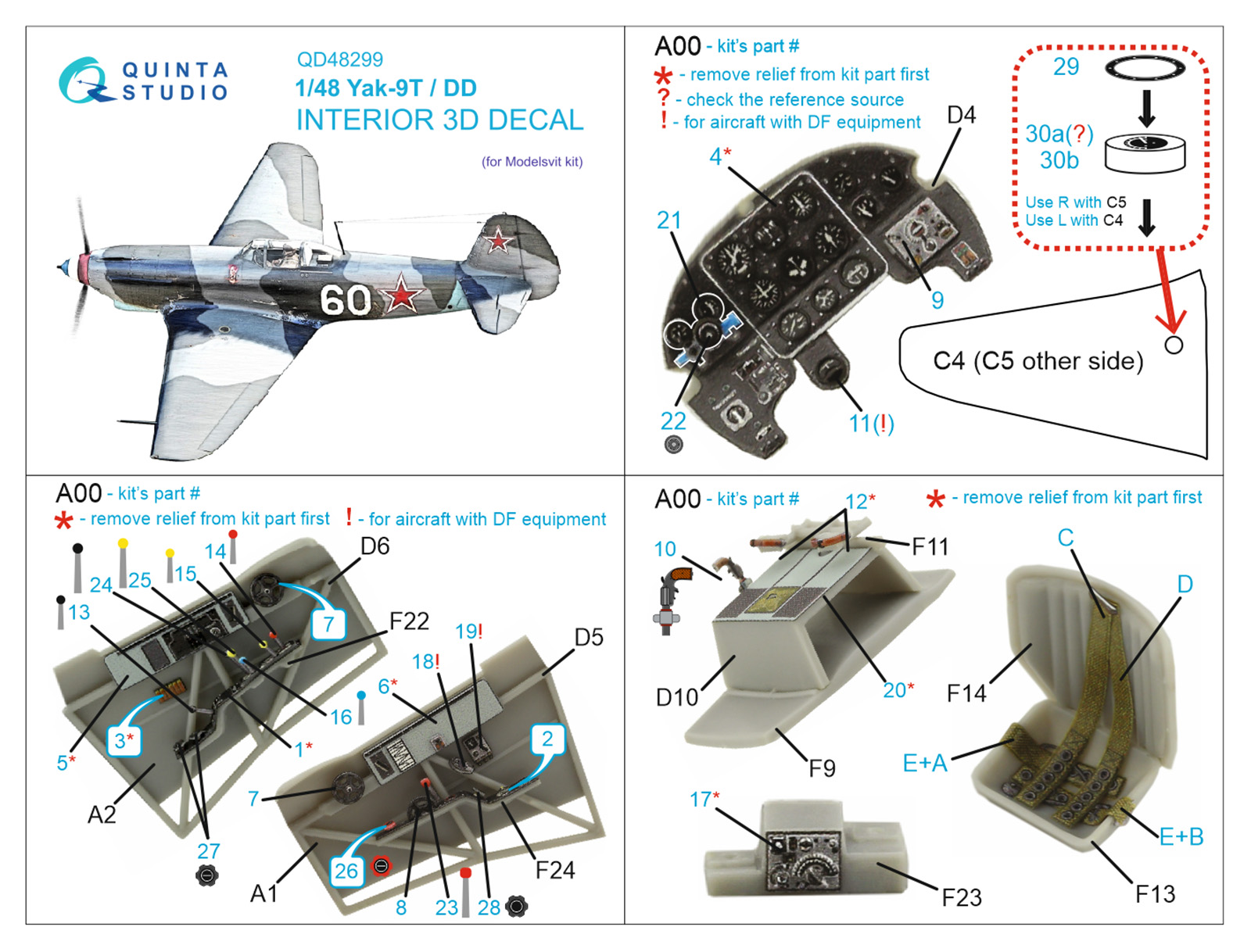 Quinta Studio - 1/48 Yakovlev Yak-9DD/Yak-9T 3D-Printed & coloured Interior on decal paper (for Modelsvit kits)